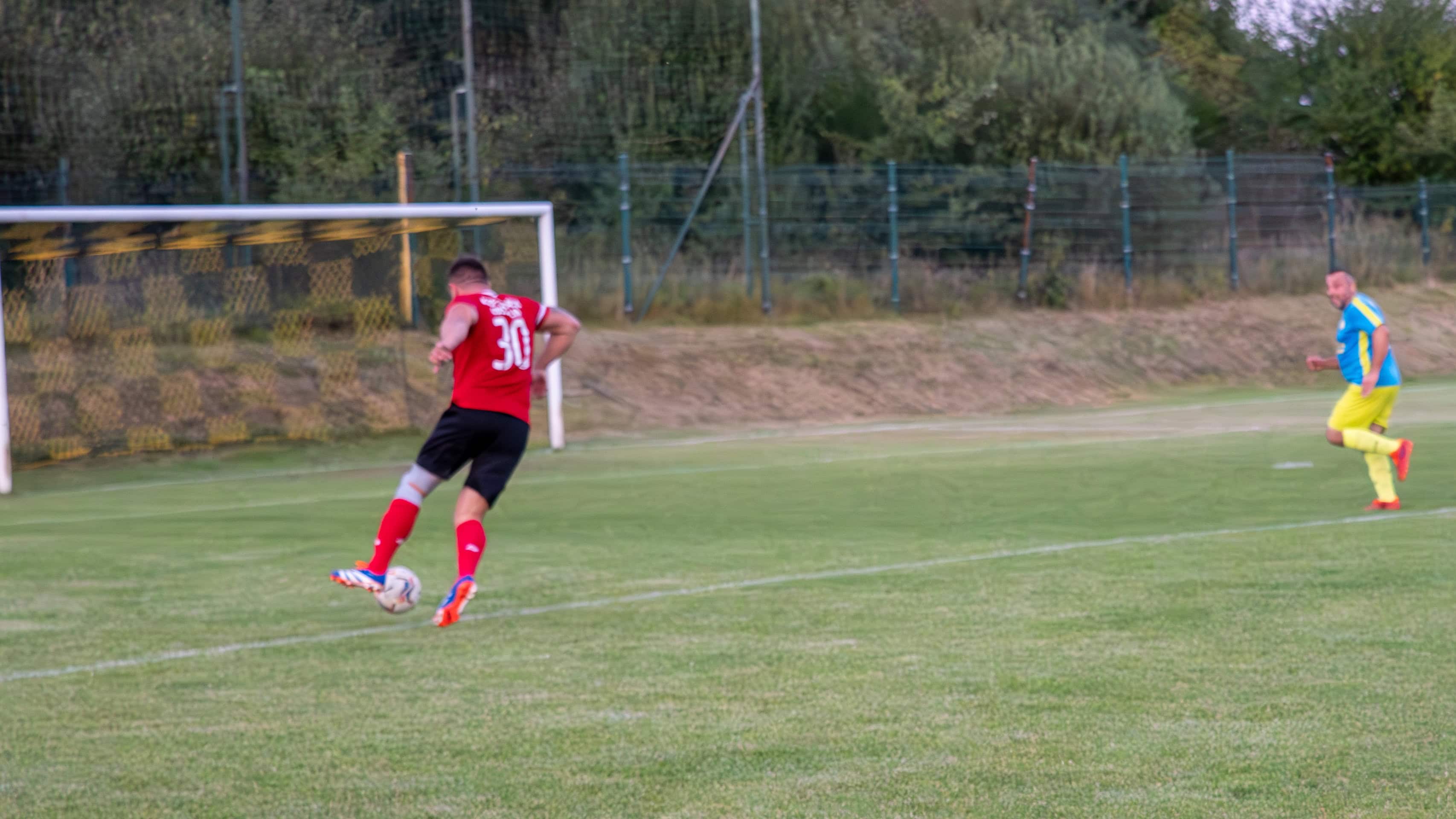 Bramkarz gospodarzy źle ocenił sytuację, popełnił błąd i wybiegł za pole karne. Pechowo, nasz pomocnik minimalnie przestrzelił. W 30 minucie jednak okres naszej dobrej gry przyniósł efekt. W zamieszaniu podbramkowym najlepiej odnalazł się Tomasz Chmielewski i z bliskiej odległości pokonał bramkarza.